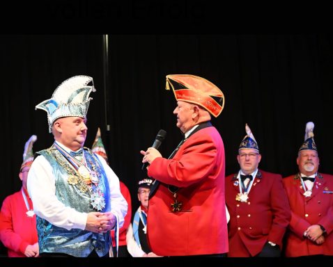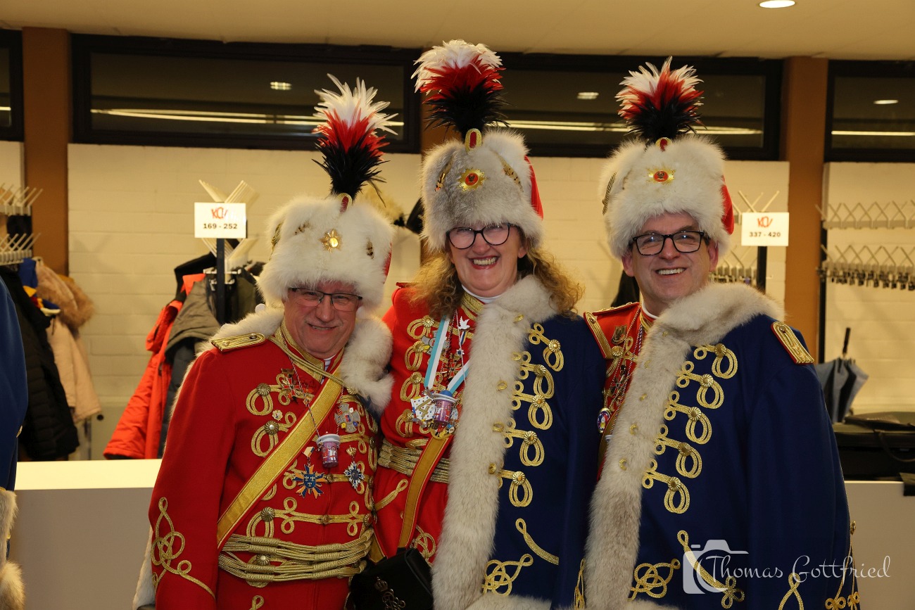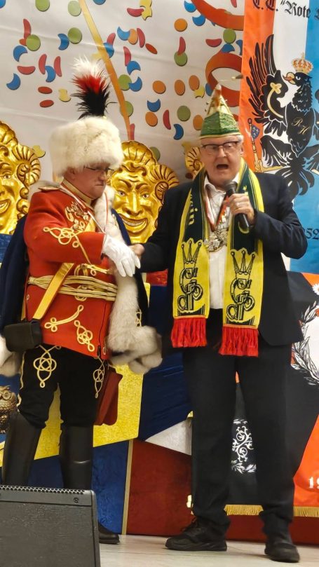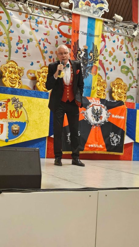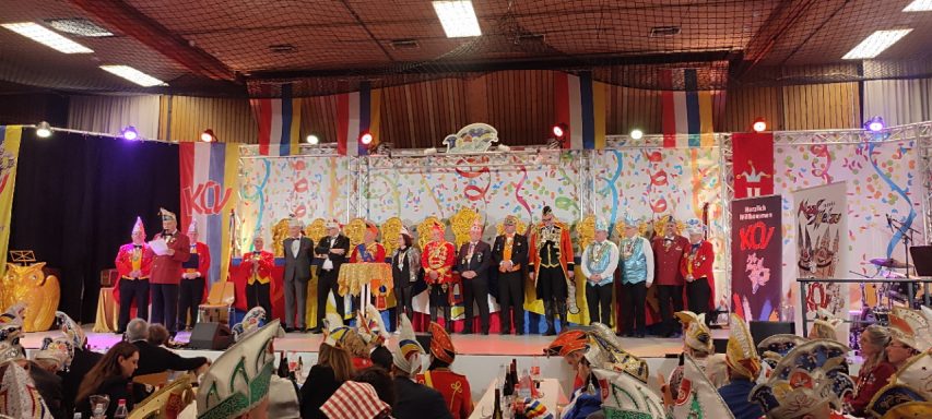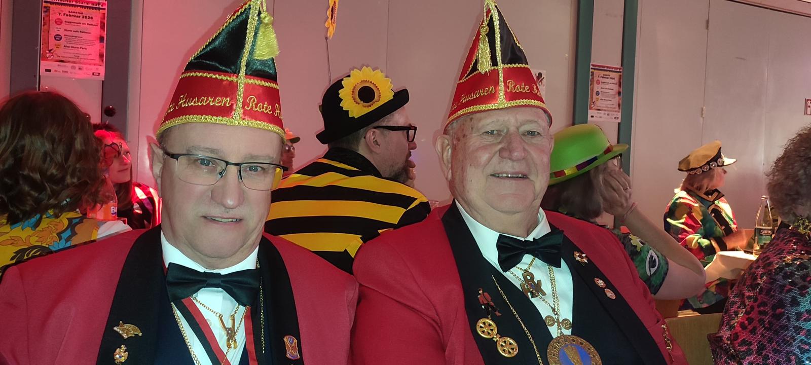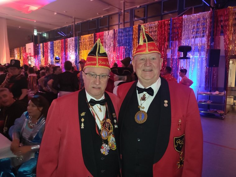 Zahlreiche Freunde von links und rechts des Rheins konnten der 1. Vorsitzende der RHK, Roland Grundmann, und der Generalfeldmarschall der Garde, und 2. Vorsitzende, Volker Bernais, mit donnerndem Helau am 14.01.2026 begrüßen, nachdem die „Tonschiddeler“, eine dem Verein angeschlossene Guggemusik, mit Pauken und Trompeten den Abend musikalisch eröffnet hatte.