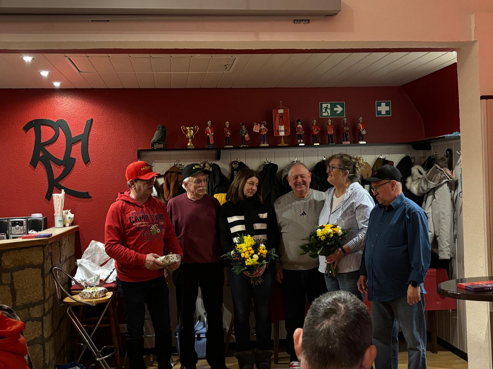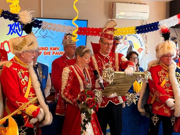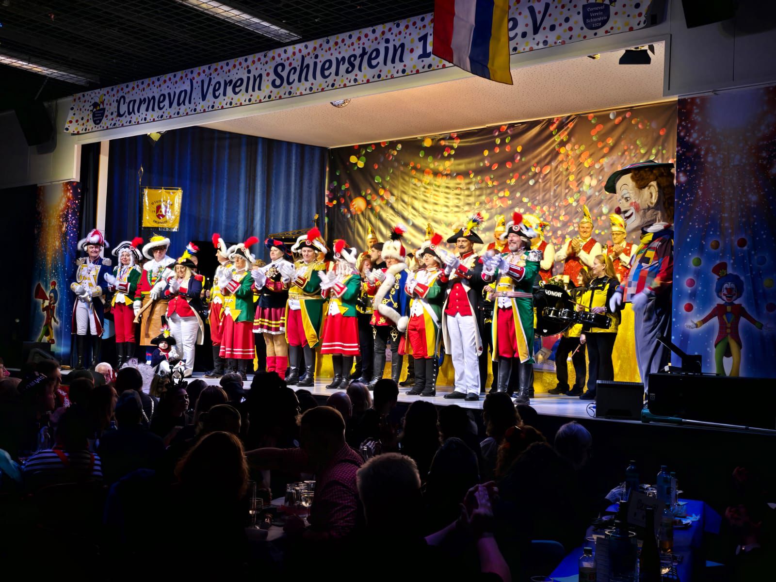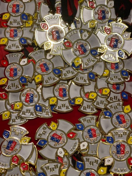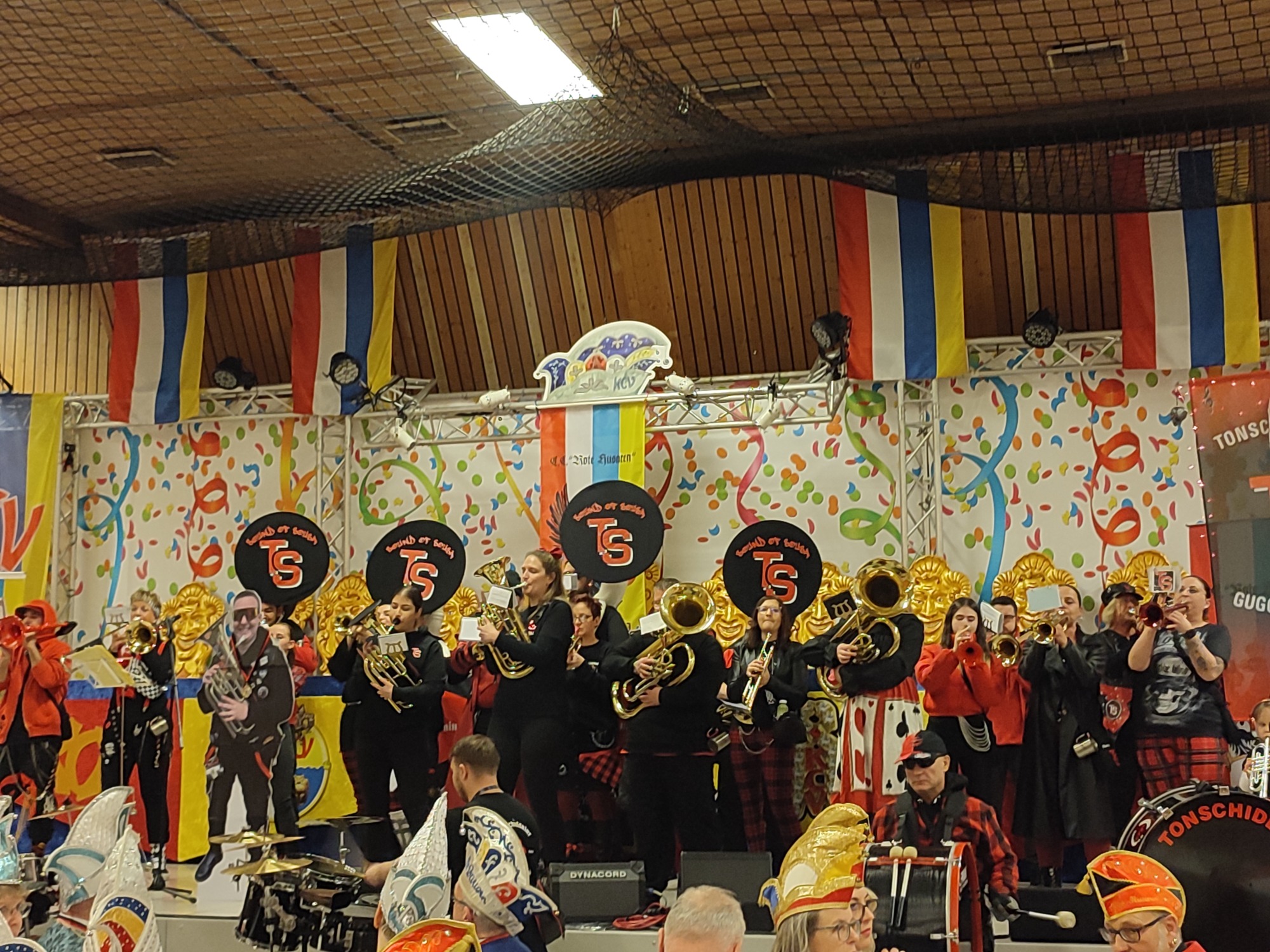 Zahlreiche Freunde von links und rechts des Rheins konnten der 1. Vorsitzende der RHK, Roland Grundmann, und der Generalfeldmarschall der Garde, und 2. Vorsitzende, Volker Bernais, mit donnerndem Helau am 14.01.2026 begrüßen, nachdem die „Tonschiddeler“, eine dem Verein angeschlossene Guggemusik, mit Pauken und Trompeten den Abend musikalisch eröffnet hatte.