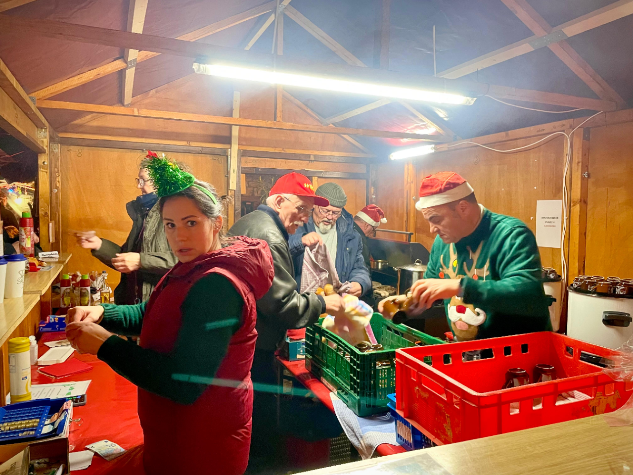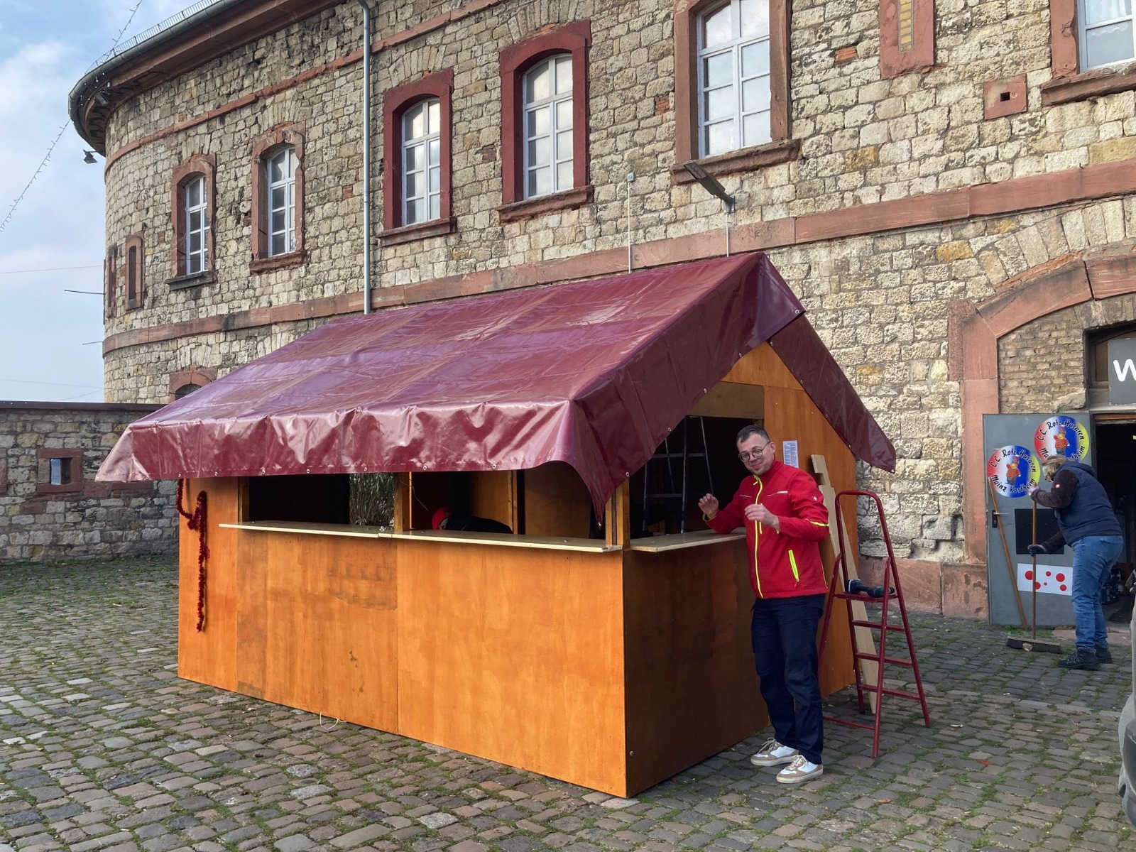 Wir die „Roten Husaren Mainz Kostheim 1952e.V.“ waren selbstverständlich mit dabei und standen wie alle Jahre vor unserem Vereinsheim mit unserem Getränke und Wurstausschank nebst einem etwas größeren Zelt damit unsere Gäste sich bequem setzen konnten beim Verzehr. Man kam schnell ins Gespräch und so entstand eine schöne vorweihnachtliche Stimmung.