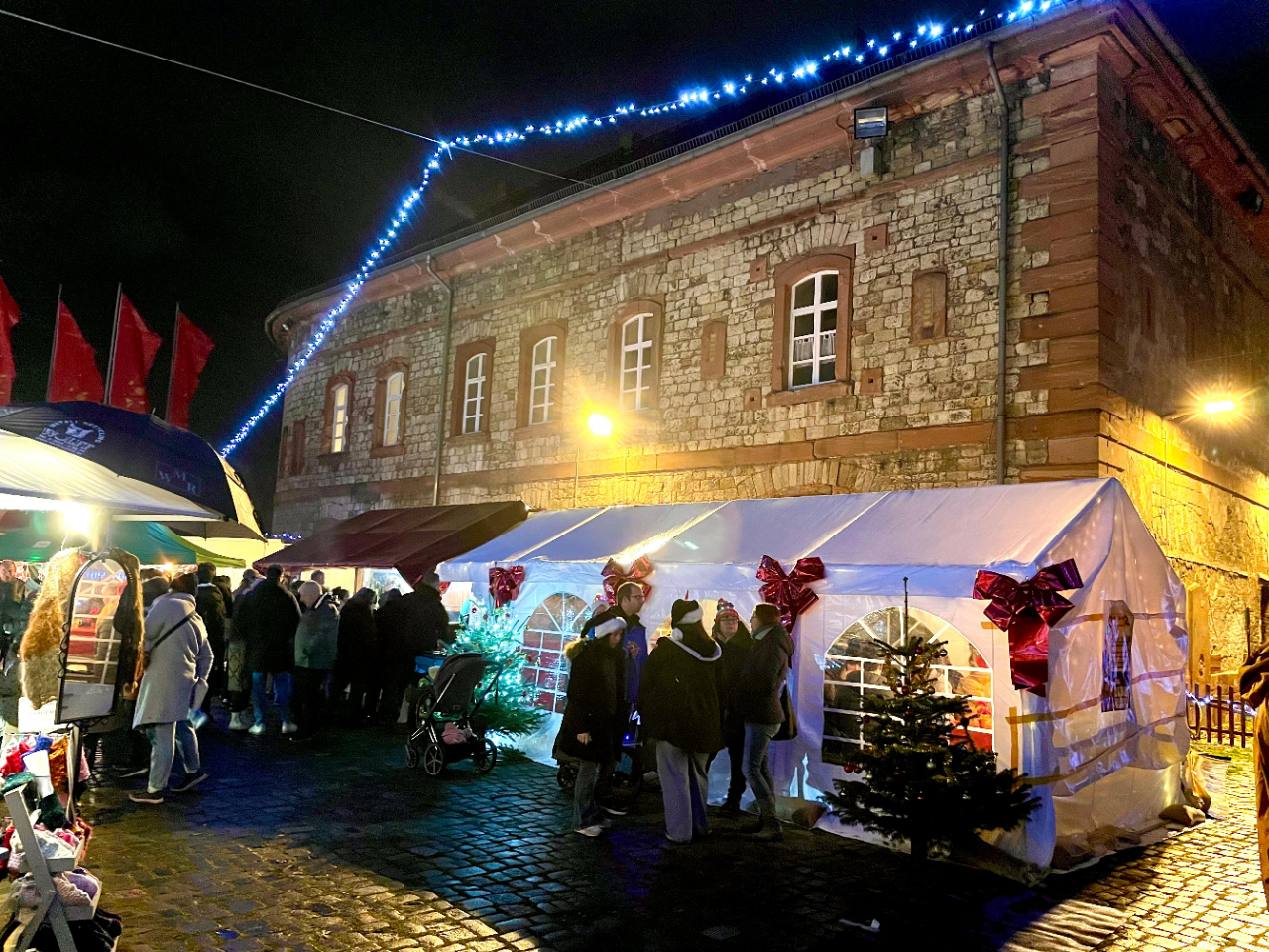 Wie jedes Jahr wehte ab dem 28/12/2025 bis zum 1. Advent der Duft vom Glühwein, Plätzchen und gegrillten im Hof der Reduit in Mainz-Kastel. Das traditionelle Kasteller Adventsdorf hatte wieder seine Pforten geöffnet für einen familienfreundlichen Weihnachtsmarkt. Mit einem Weihnachtsmann, Kinderkarussell und Ponyreiten für die kleinen und für die Großen gab es diverse Getränke mit und ohne Alkohol selbstverständlich auch verschiedene Gerichte mit und ohne Fleisch.