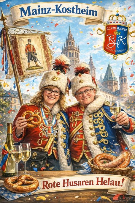 Am 03.01.2026 waren die „Roten Husaren Mainz Kostheim 1952e. V.“ Zu Gast bei der Garde der Prinzessin anlässlich des 140sten Jubiläum und der Bestellung des neuen Generalfeldmarschalls.